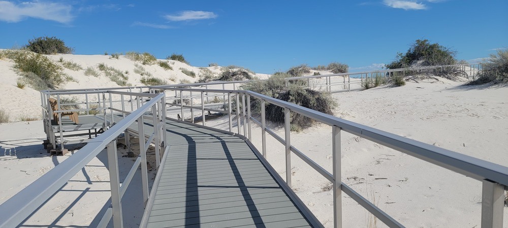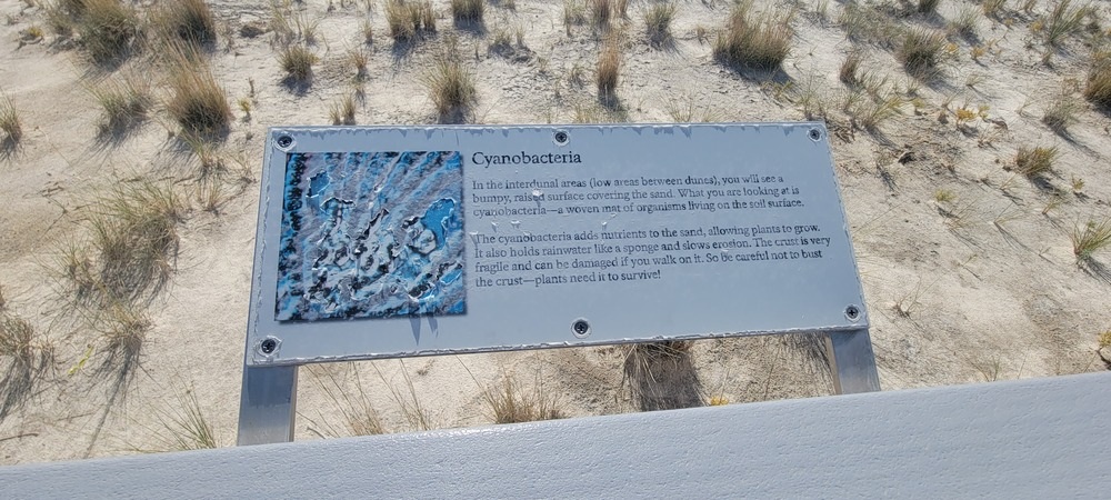 When you pull into the parking area, it will be easy to spot the walkway that will take you two-tenths of a mile out to the end. This walkway is handicap accessible and available to all skill and ability levels who want to see and learn a little bit more about the sand dunes.
