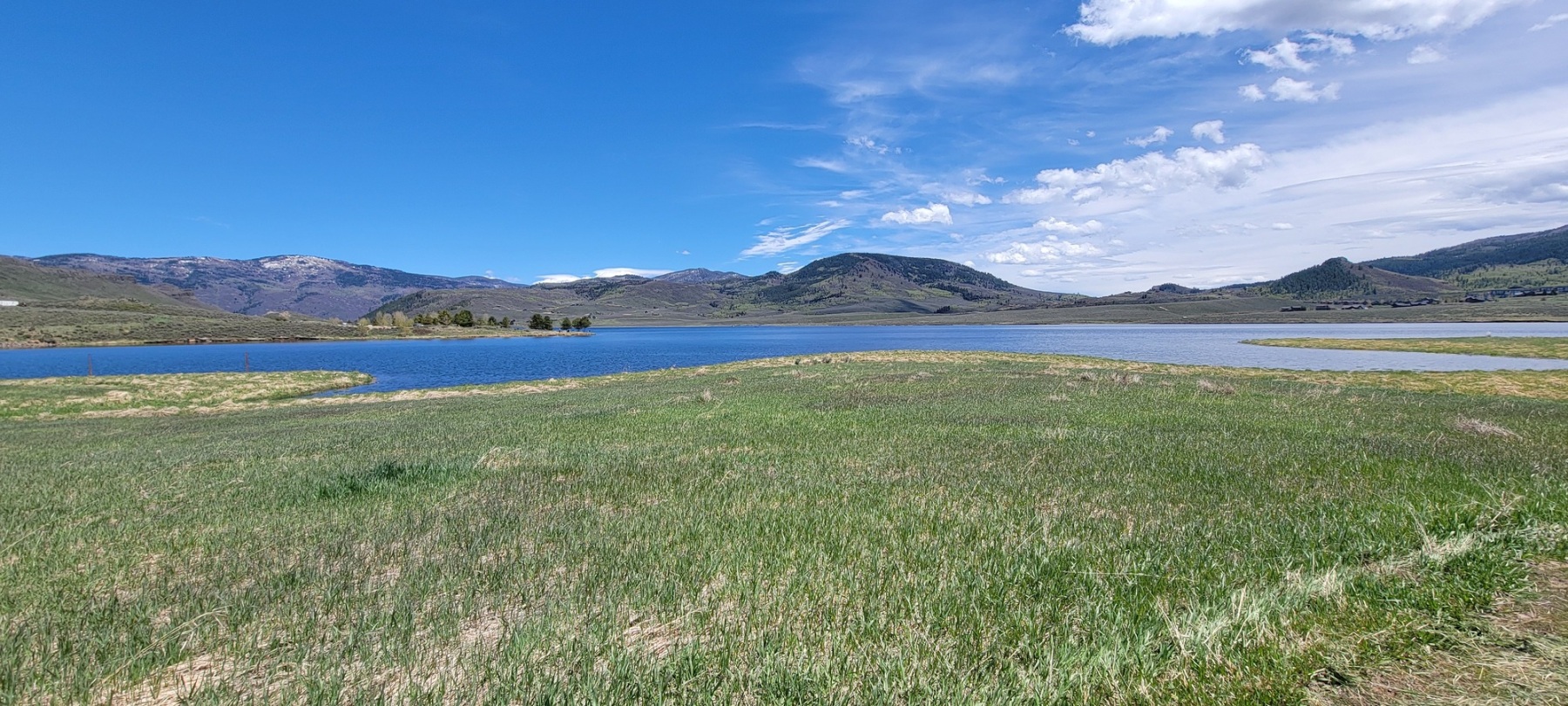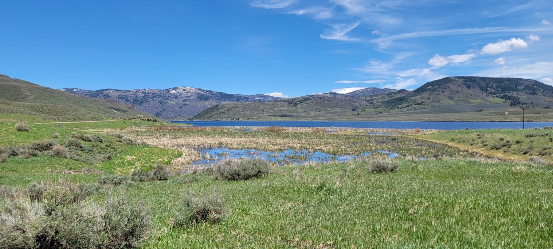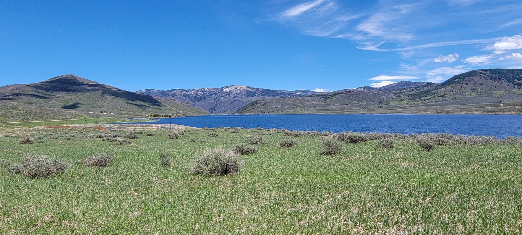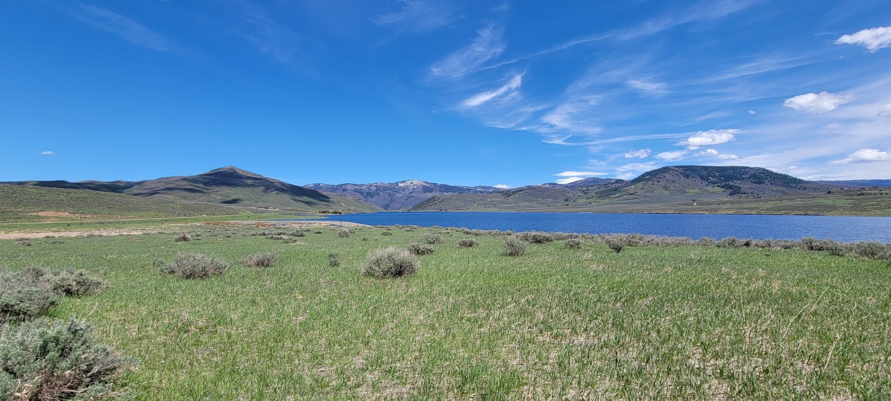 What makes this park and the hike so special are the views. The lakes sits at the base of several small foothills and some larger mountains. The foothills were early season green and beautiful. One hill even had a small herd of cattle out grazing. The taller mountains had some small strips of snow still holding onto the peaks. They all filtered down to the crystal blue Stagecoach Reservoir.