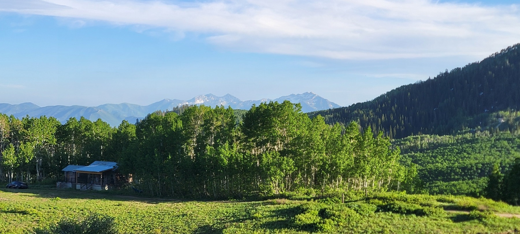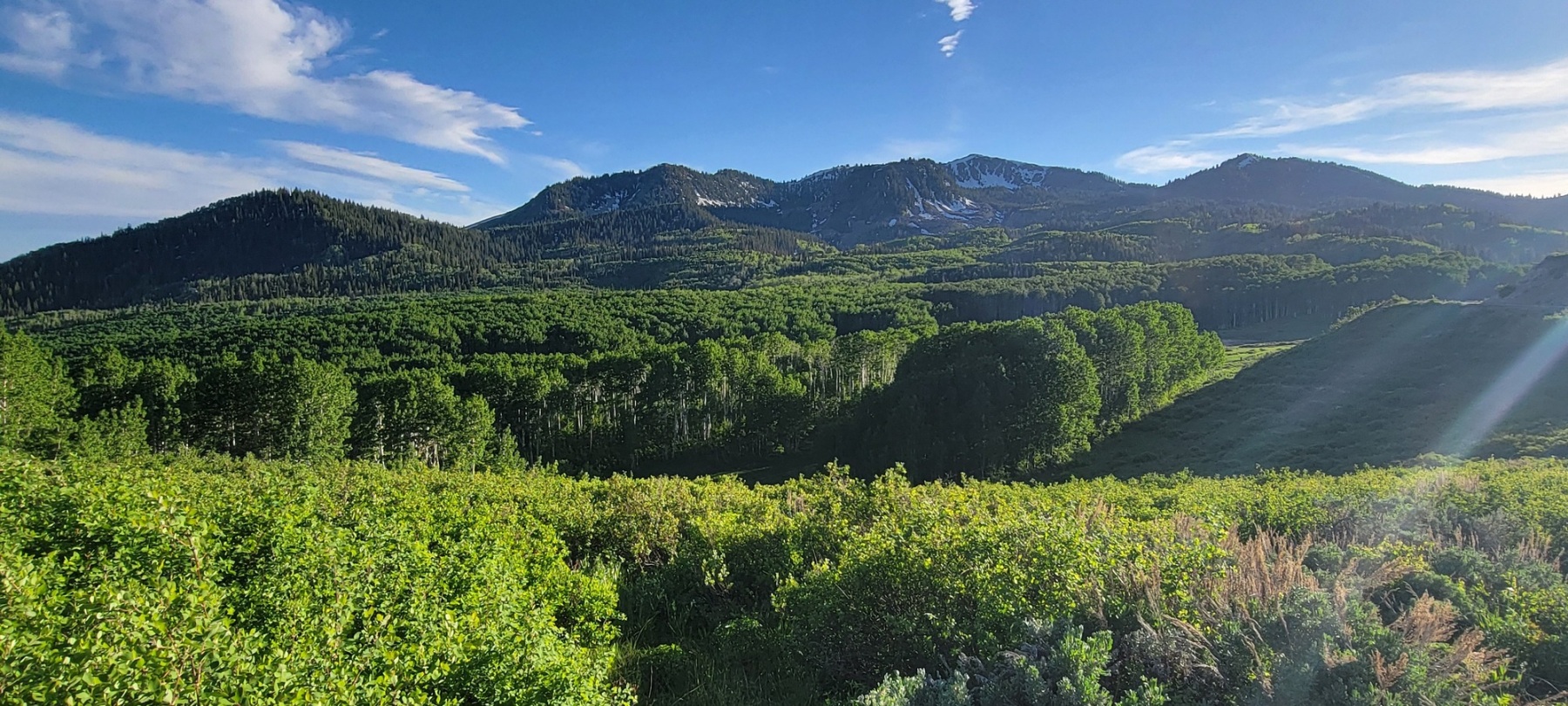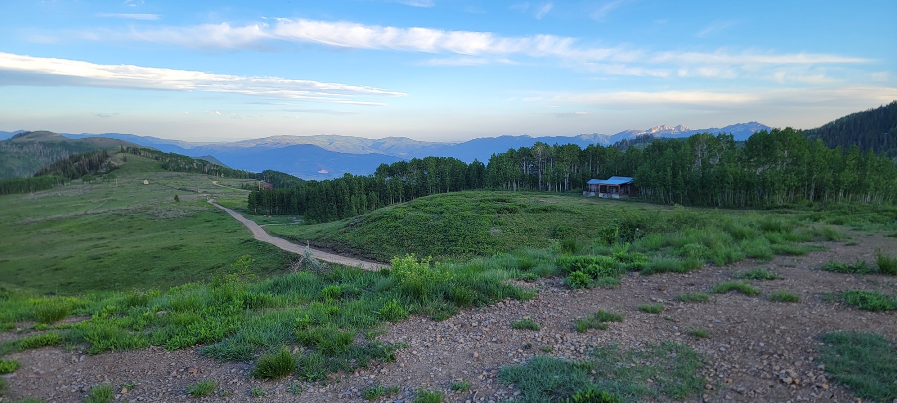 The Hoss Trailhead is the first parking lot after clearing the pass from the Winter Park side of Guardsman Pass. There are some really great views from the lot and in the early summer the countryside was a bright green. The Hoss trail starts from the parking lot and then connects to several trails in the complex. It starts on the west side of the parking lot.