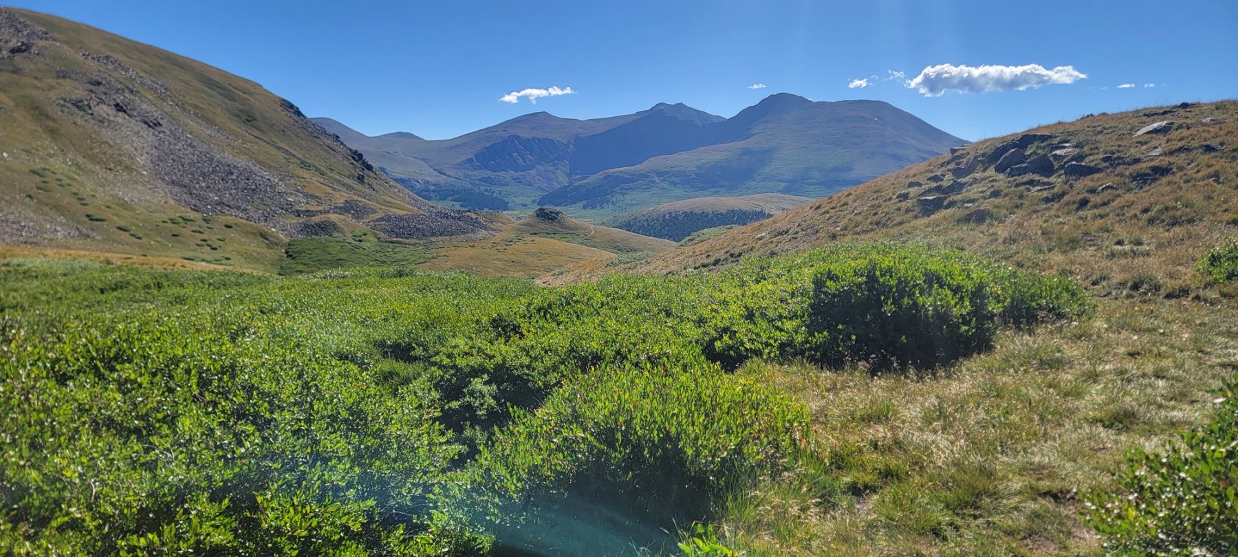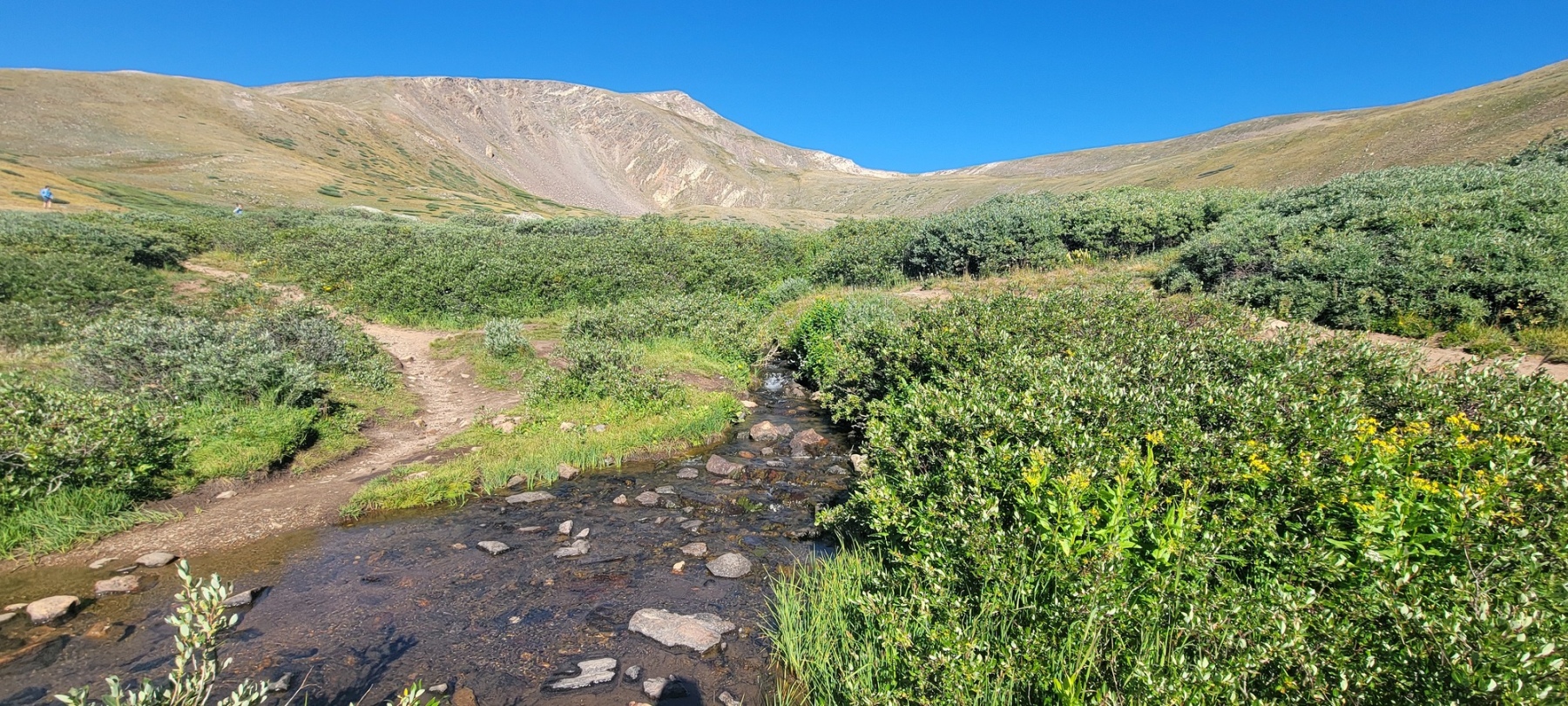 This might be one of the more beautiful hikes in Colorado. It is nice to be on the top of the mountain pass but not have as many people around as the trail to Mt. Bierstadt. I found that I could enjoy it a bit more although it did get busier later in the day.