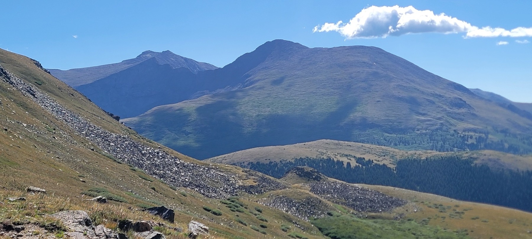 From the top of the hill/ridge are some of the best views of the entire hike. Below is the lower lake and in the distance is Mount Bierstadt and it is rather magnificent. I sat up at the upper lake for a few minutes and most of the time was with my back to the lake so I could take in this view.