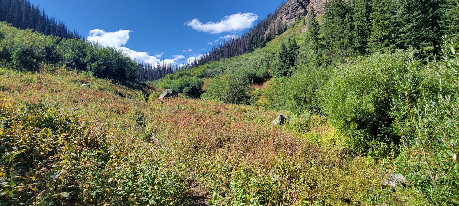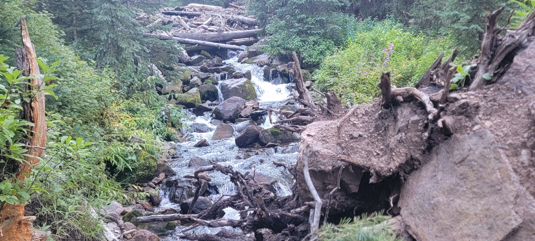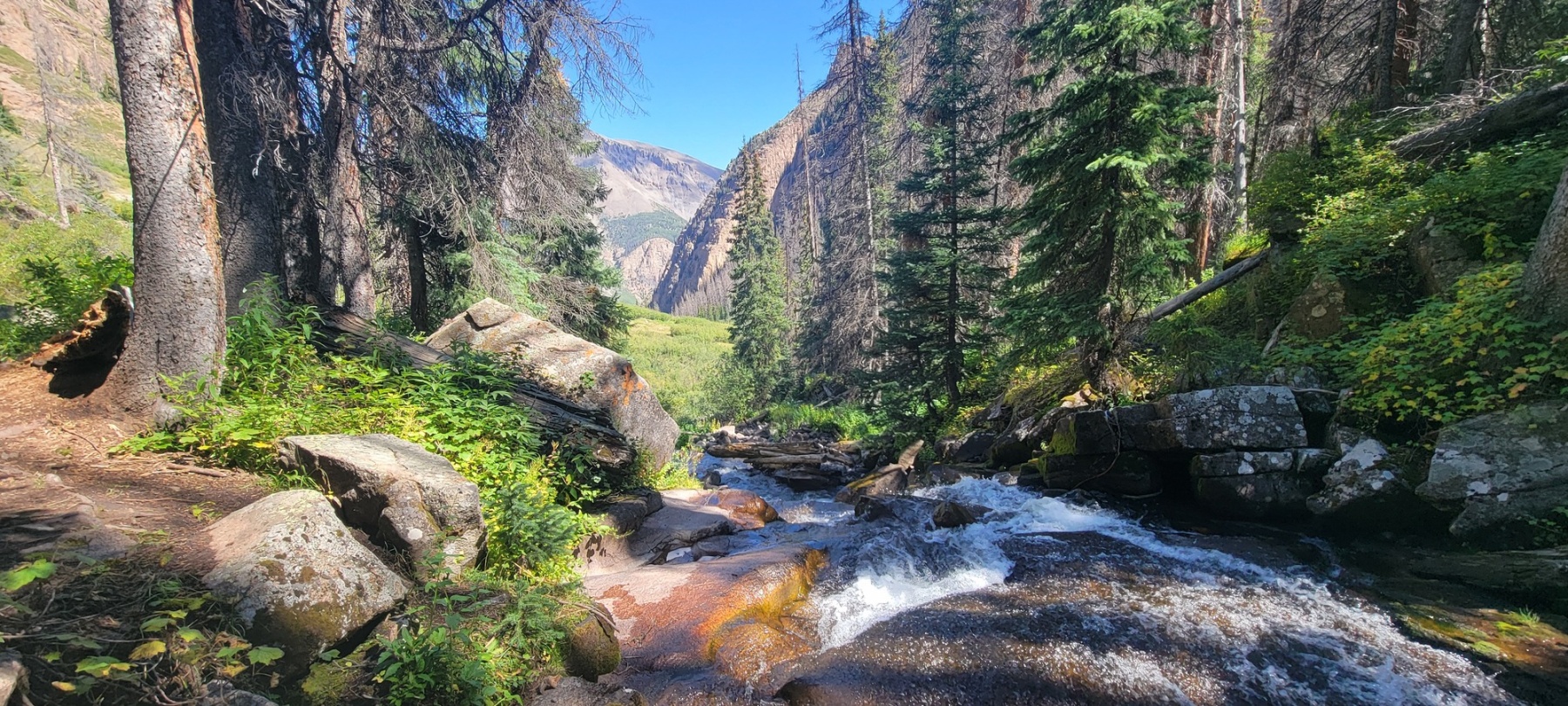 If you turn around at the falls like I did you get to follow the water from the falls back into the meadow. I had a greater appreciation of the water flowing down this mountain after seeing its origin story. The meadow was a little prettier and the switchbacks weren’t as challenging. The water kept me motivated though one of the more beautiful hikes I have done in Colorado!