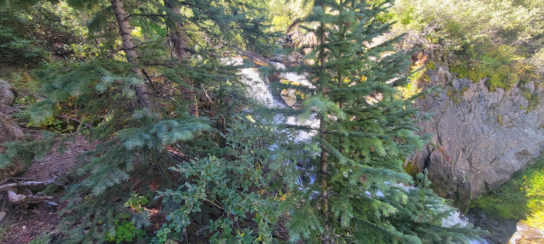 The trail stops off at the lower section and then has a good viewing spot closer to the upper section as well before continuing on a few more miles to the lake. I decided to end the hike at the falls because they were just stunning. As the water exits this series of falls, it feeds the small creek down that flows down the gulch and that you followed up the trail to this point.