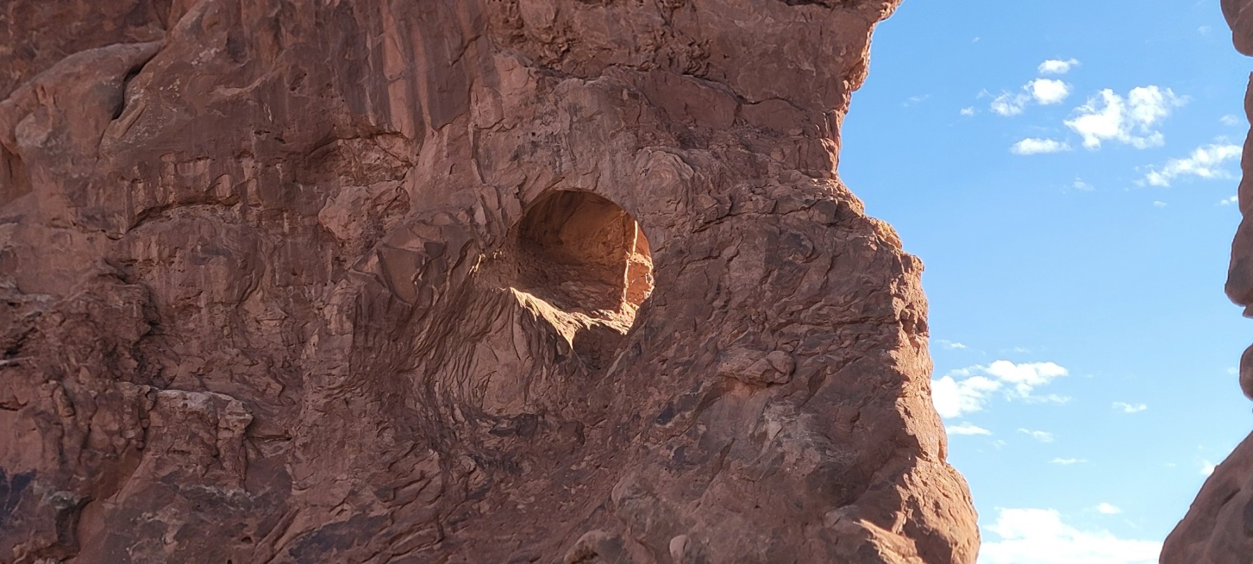 One of the best parts of the Windows Primitive trail is being able to enjoy the windows from a completely new perspective, the backside. While there are a ton of people who gather on the front side of the windows, I was able to stand and look at these impressive rocks completely alone for a few minutes. Something I wouldn’t have been able to do on the front side. I also thought the windows gave more of a human look on the backside. Almost looking like eyes watching me as I was looking at them.