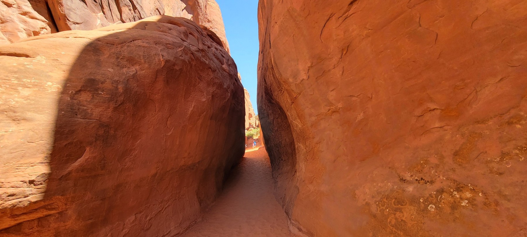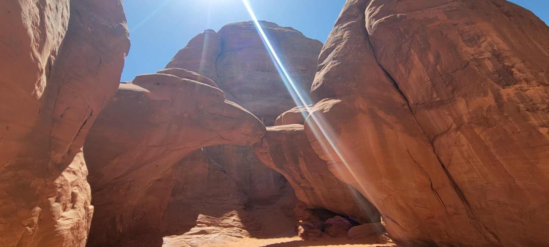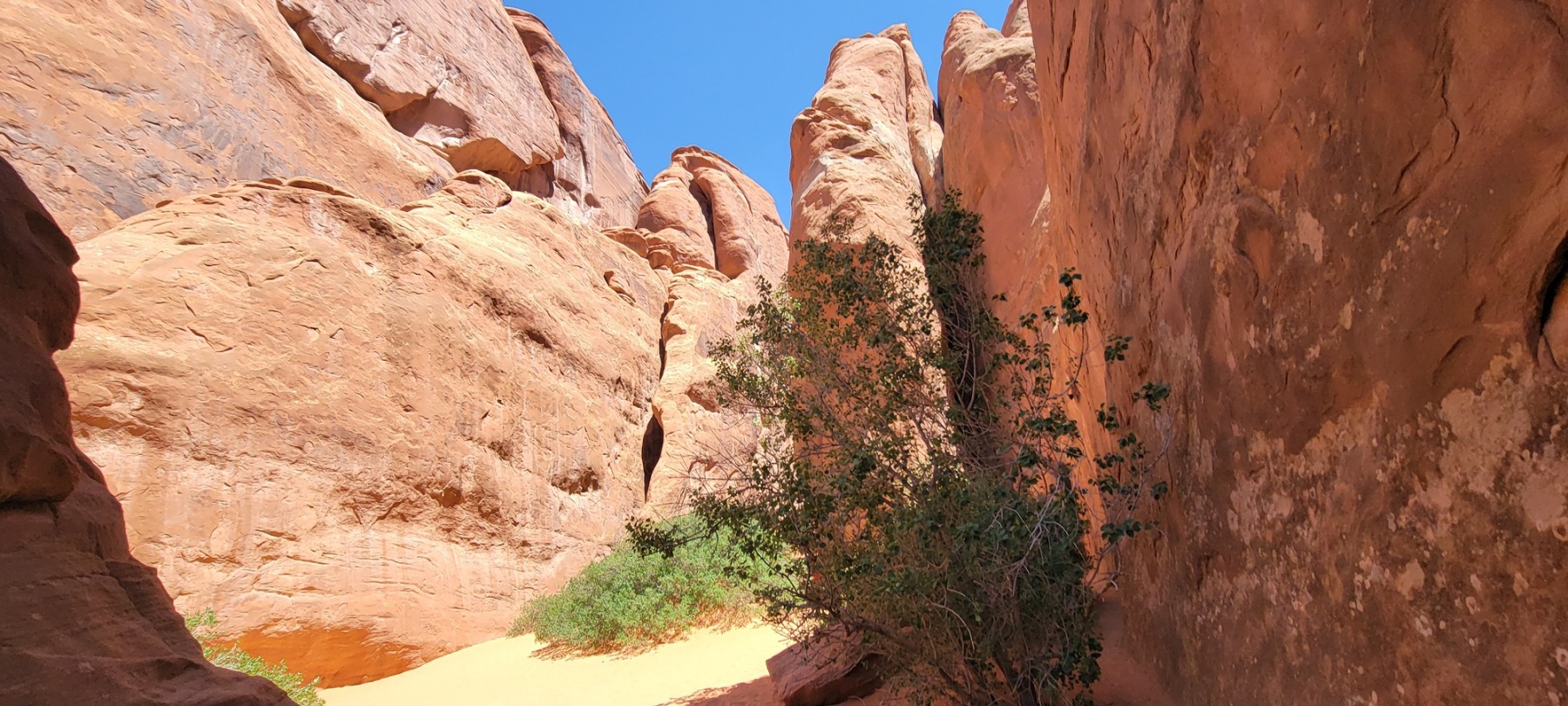 Sand Dune Arch is the closest option and the arch is protected a bit by a rock barrier. This is the most challenging section of the hike and needs to be taken one person at a time. A rounded rock boulder stands between two vertical rock areas and needs to be walked over. While a majority of people had no problems with this, a few people, especially those who aren’t outdoors a lot or who may have been a bit older, had some issues making it over the obstacle. I just want to make sure everyone is aware of it and make sure that shoes with some decent traction are worn.