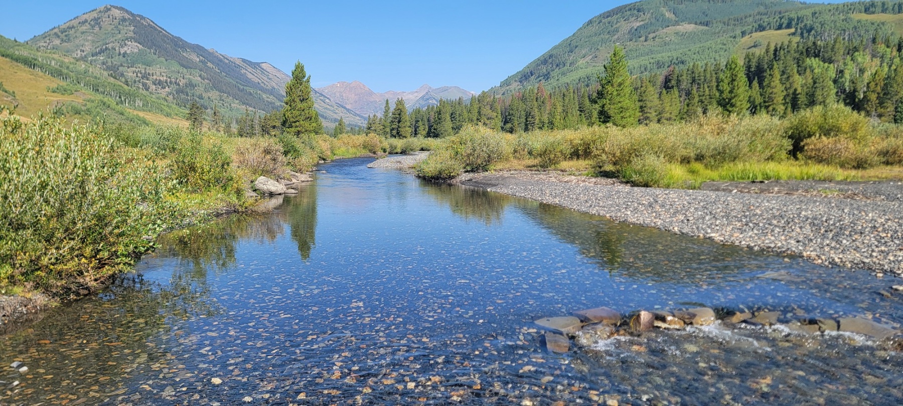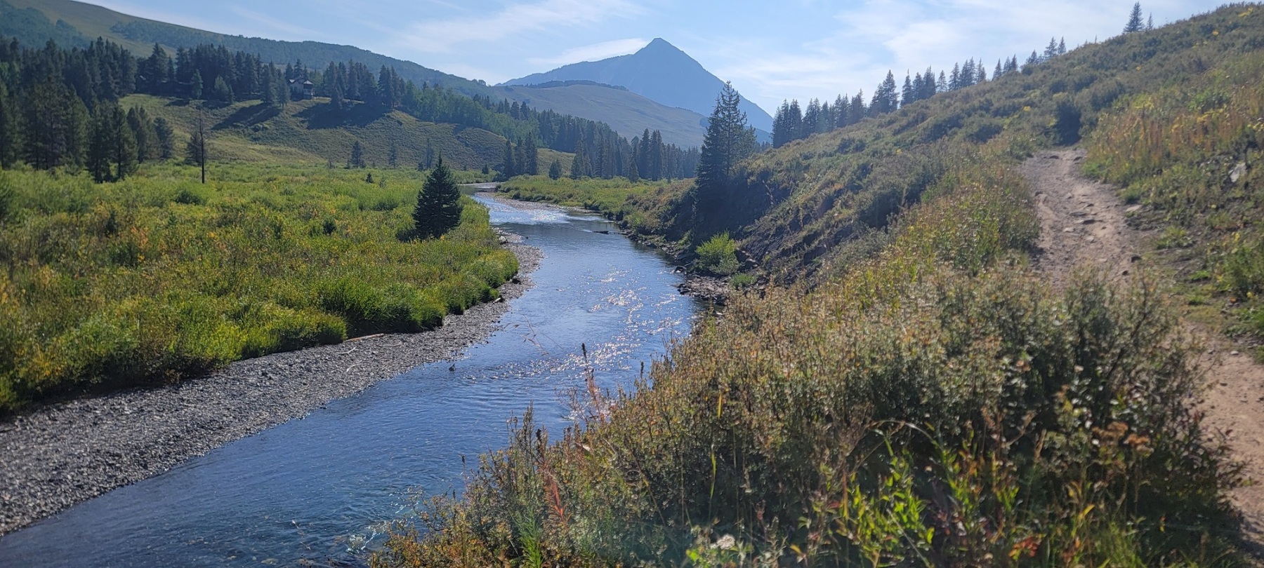 When I hiked the Crested Butte Lower Loop Trail over Labor Day weekend, the Slate River was pretty low but pretty amazing. It just gently meandered through the hills and trees of the valley. The banks were bare, exposing the rocky river bed, but the water that remained, sat like glass or lazily drifted downhill. It was like a perfect metaphor for the waning days of summer.
