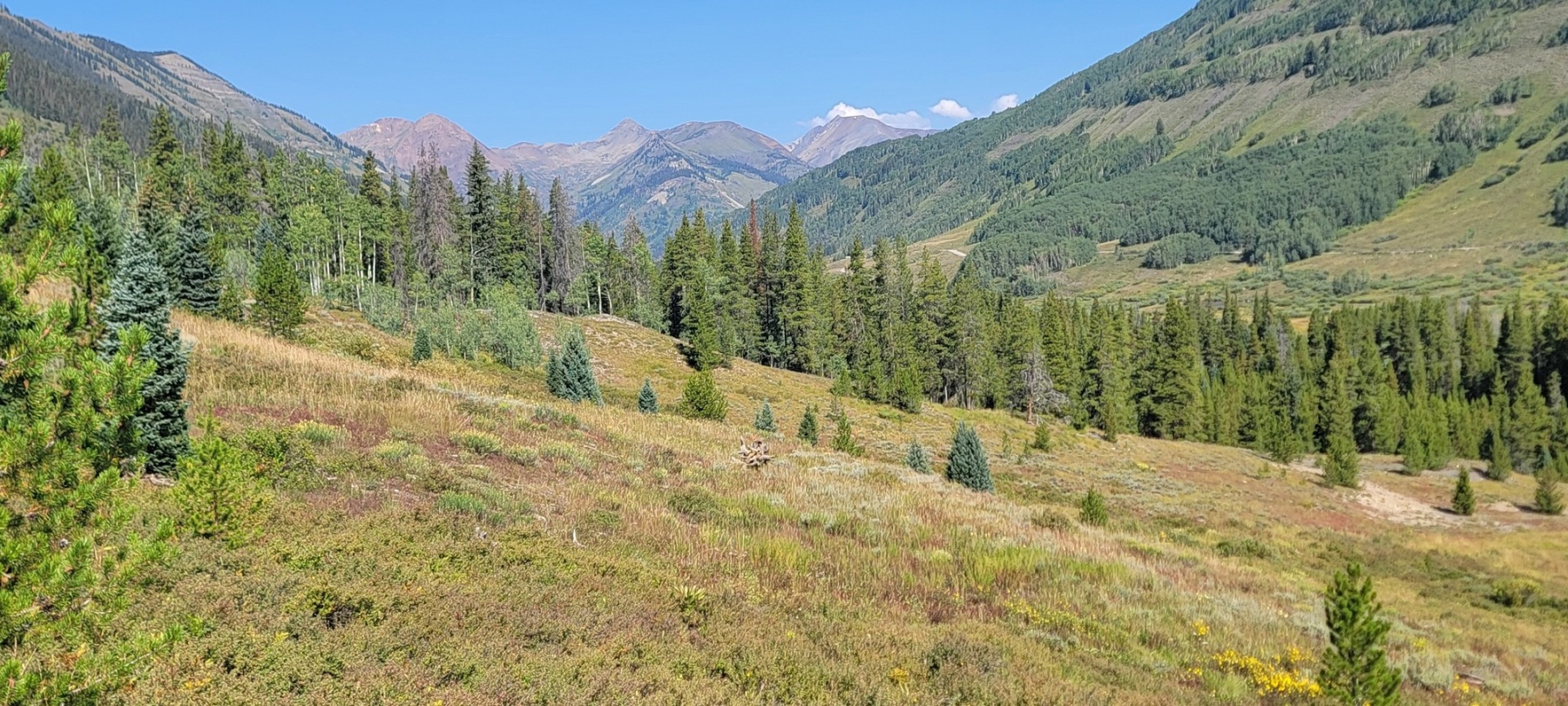 Now I don’t want you to focus on the loop or the elevation gain because the views of this big valley or meadow are simply stunning. The whole trail funnels down and the end are rocky peaks. Tree covered hills line either side. The grasses and trees make this a giant green bowl of visual happiness. Just one sensational places to walk and take in all the wonders that Colorado has to offer.