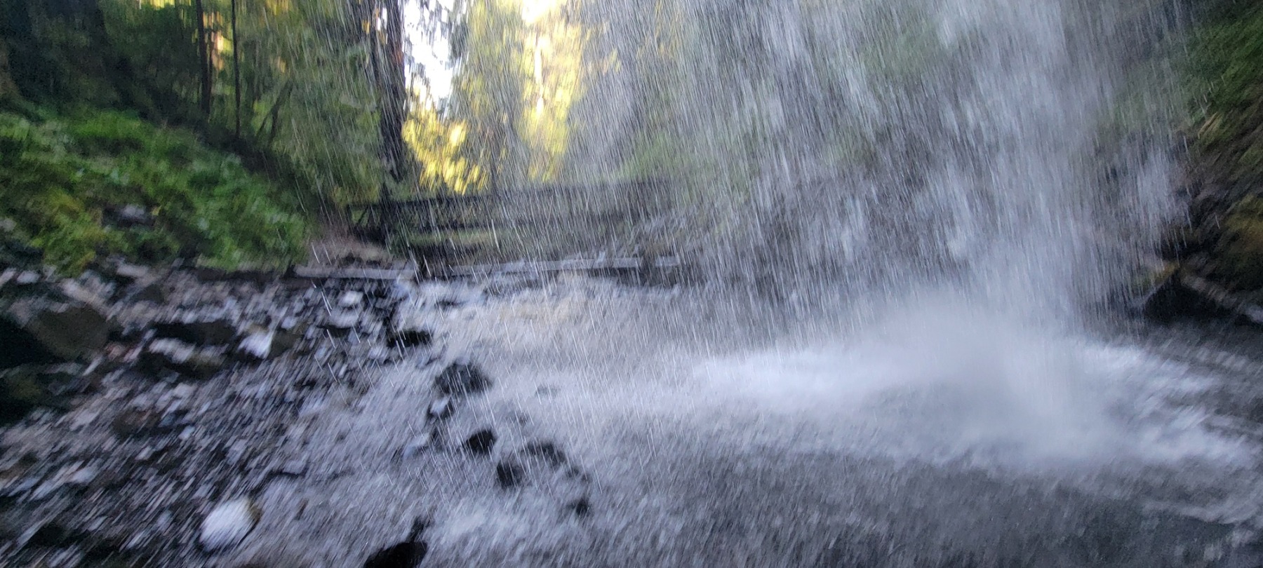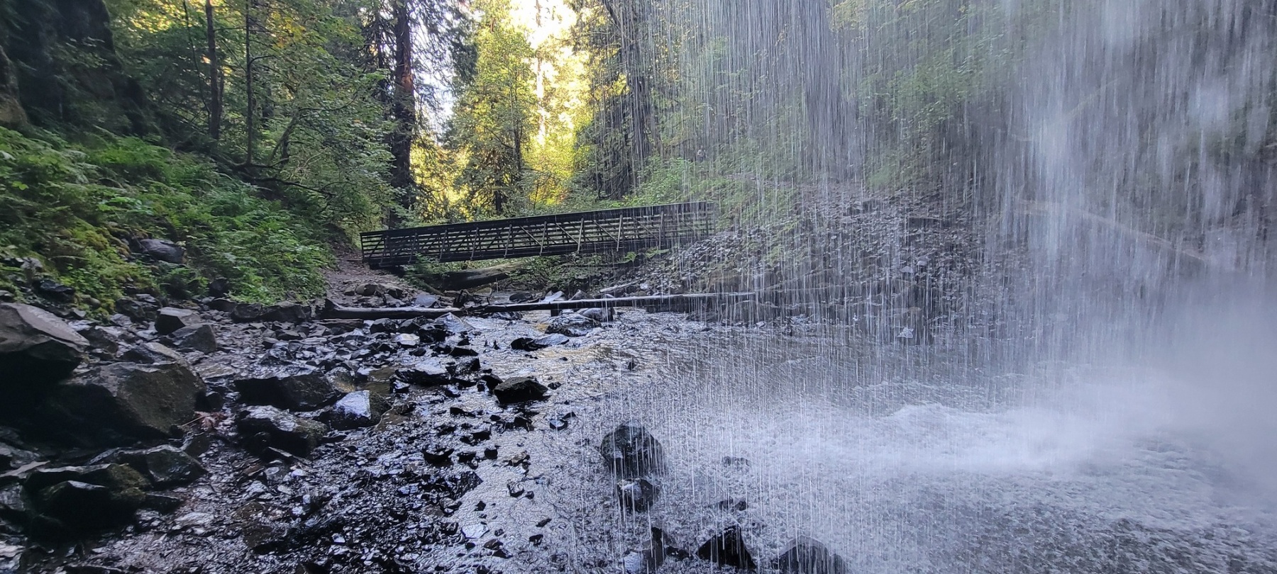 My favorite part of the hike was the upper falls. This waterfall at the top of the loop of the trail is smaller than the lower fall. About half as high, around 120 feet. But these falls had an easy path to get behind the water, which is always my favorite thing to do at waterfalls!