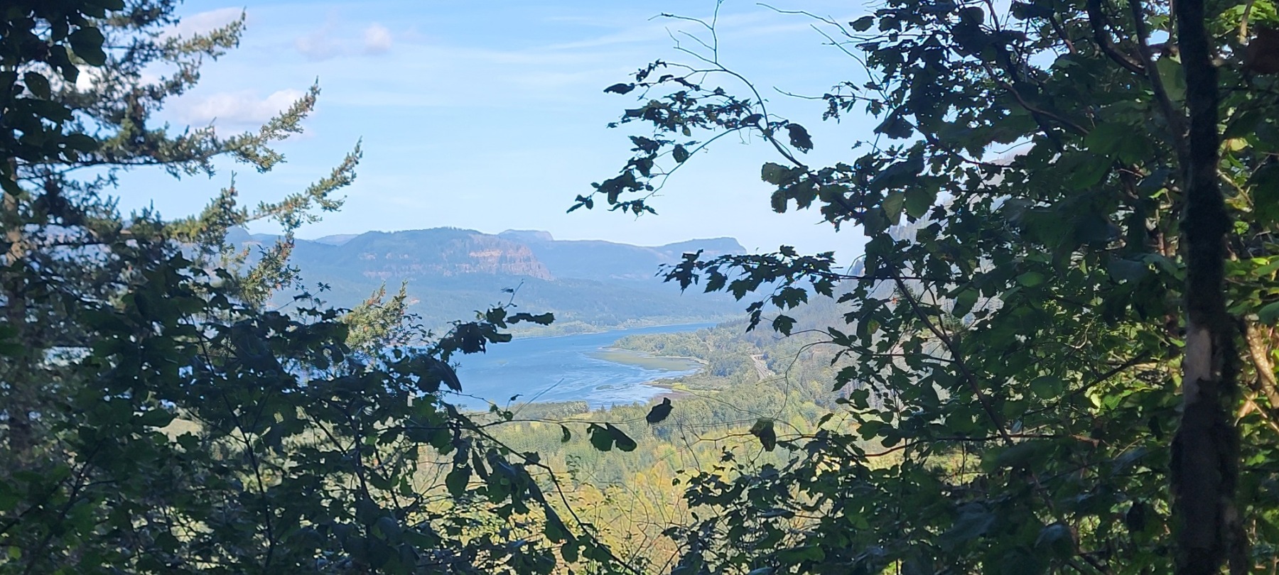 The rest of the hike had some very cool things to look at as well. One was the overlook. Through the trees, a beautiful vista of the Columbia River. For most of the hike, the river isn’t visible and then all of a sudden there was this great view of the massive waterway in all its glory just waiting through the trees.