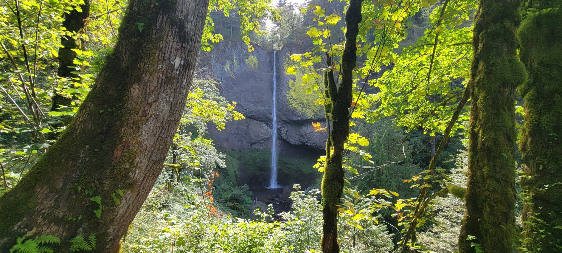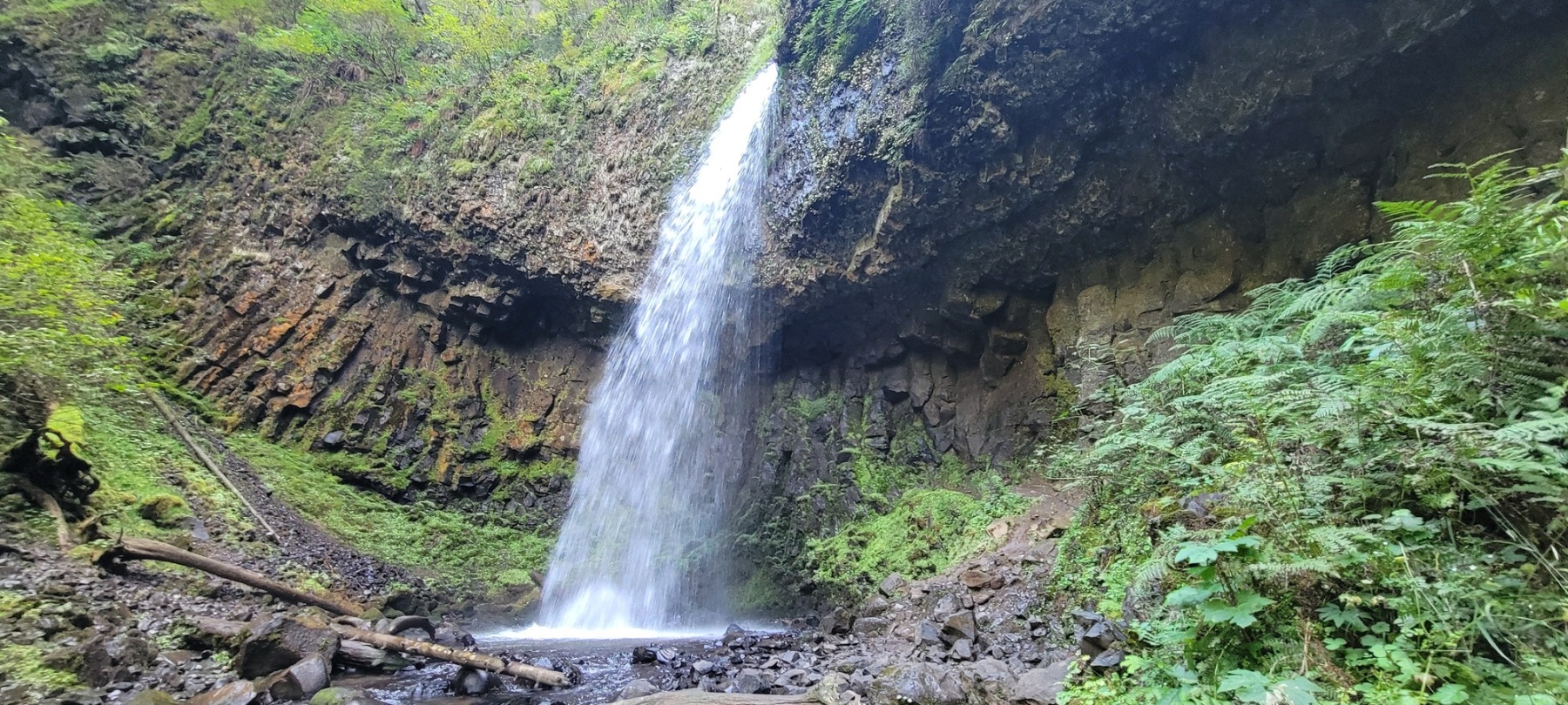 There are two easy ways to get to the lower falls and both provide some really amazing views. The first, and most common way, is to just walk up the staircase right from the parking lot. The top of the staircase gives a wonderful overlook of the 224 foot single stream falls. It is really amazing to see the water column just fall so perfectly to the ground below. The surrounding foliage gives the feel of tropical paradise just a short distance from the Columbia RIver.