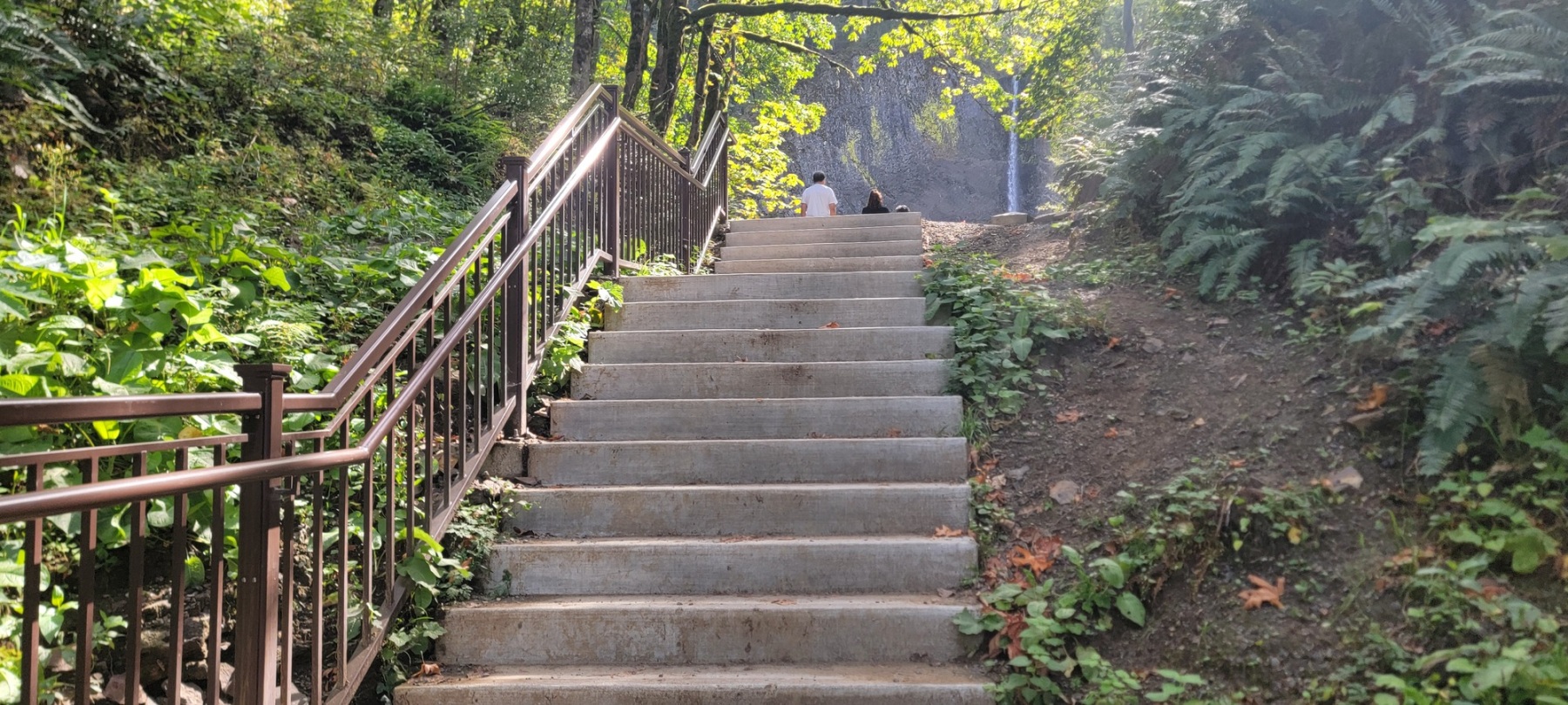 To get to the lower falls, there is a concrete staircase and well maintained walkway depending on if you are looking for the viewpoint or to get closer to the falls. If you want to hike the entire loop, the trail does get a bit steeper and more narrow and rustic as you move towards the second fall. I would suggest a good hiking shoe with decent traction to help with the damp and narrow track.