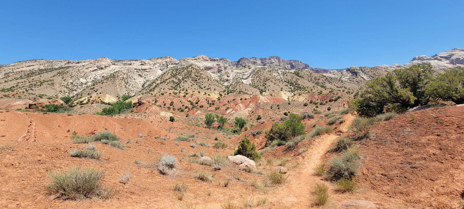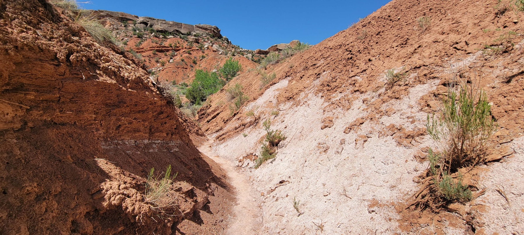 The top section of the Sound of Silence trail reminded me a lot of the painted desert in Arizona. There is layered white rock surrounded by red clay/sand that gives everything a nice layered look. The contrast in the colors, especially under a blue sky is really impressive.