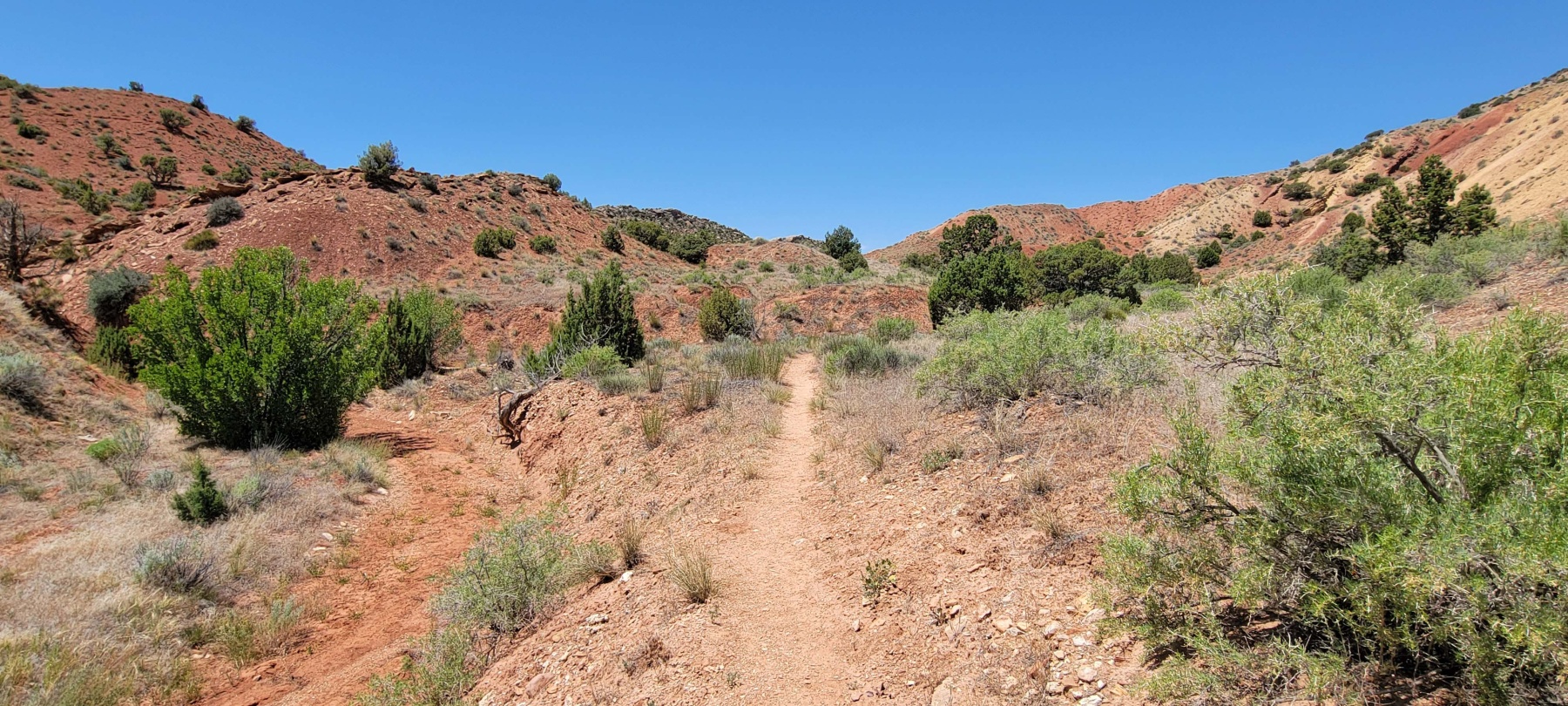 When it comes to the hike, there really isn’t anything to technical to deal with. The trail leads into a small wooded area into a wide open bowl with hills on either side. The lower hills are shaded red and white with small juniper trees pocking the landscape. The higher levels are white rock that stood out against the blue sky on a warm summer afternoon.