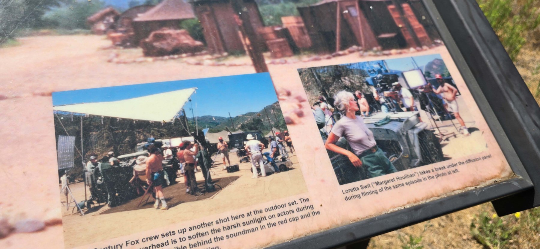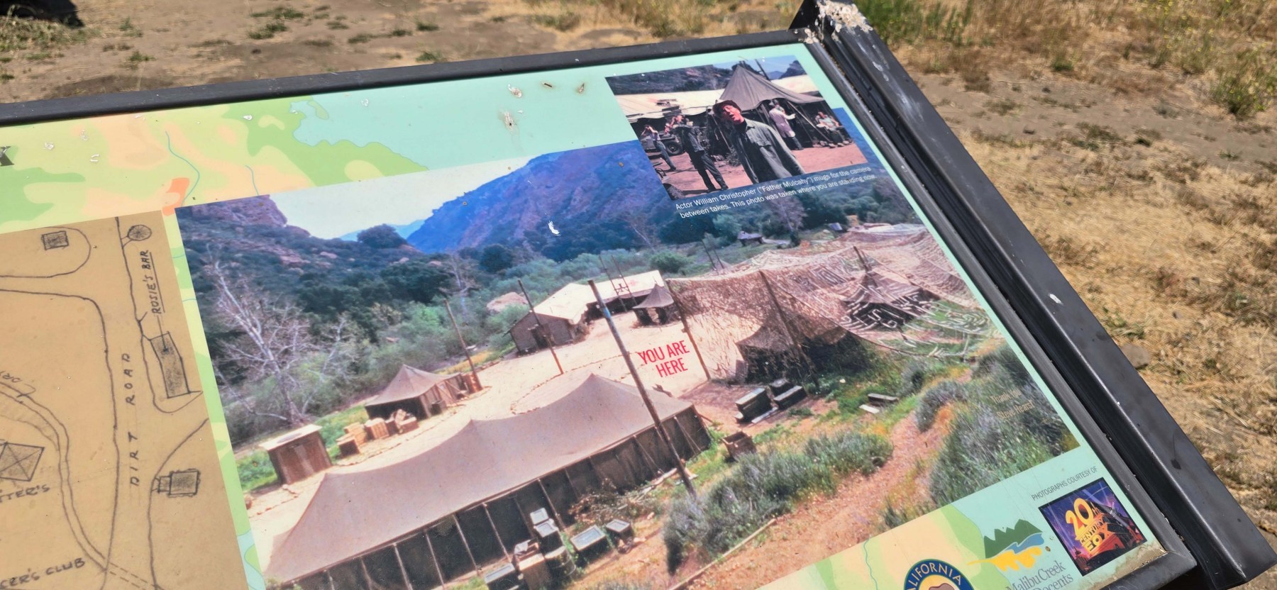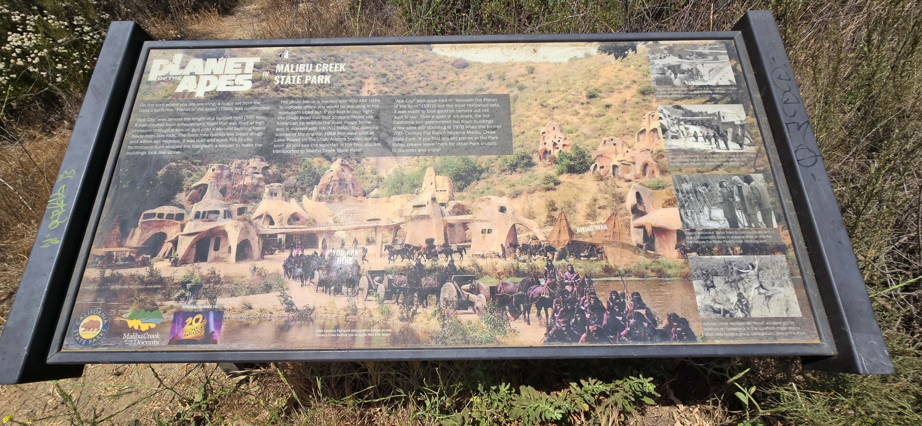 About 1.3 miles into the hike I came to a little surprise. On the side of the road sat a small info graphic that told me that I was standing in the location of the “town” in the original Planet of the Apes film. There was nothing left from the set, just the plaque and an empty hillside. However, the graphic had old set pictures on it that showed exactly where all the set pieces were and it was really cool to see how they could turn this little hillside into a fully functioning “town.”