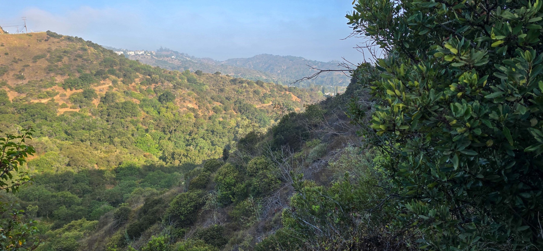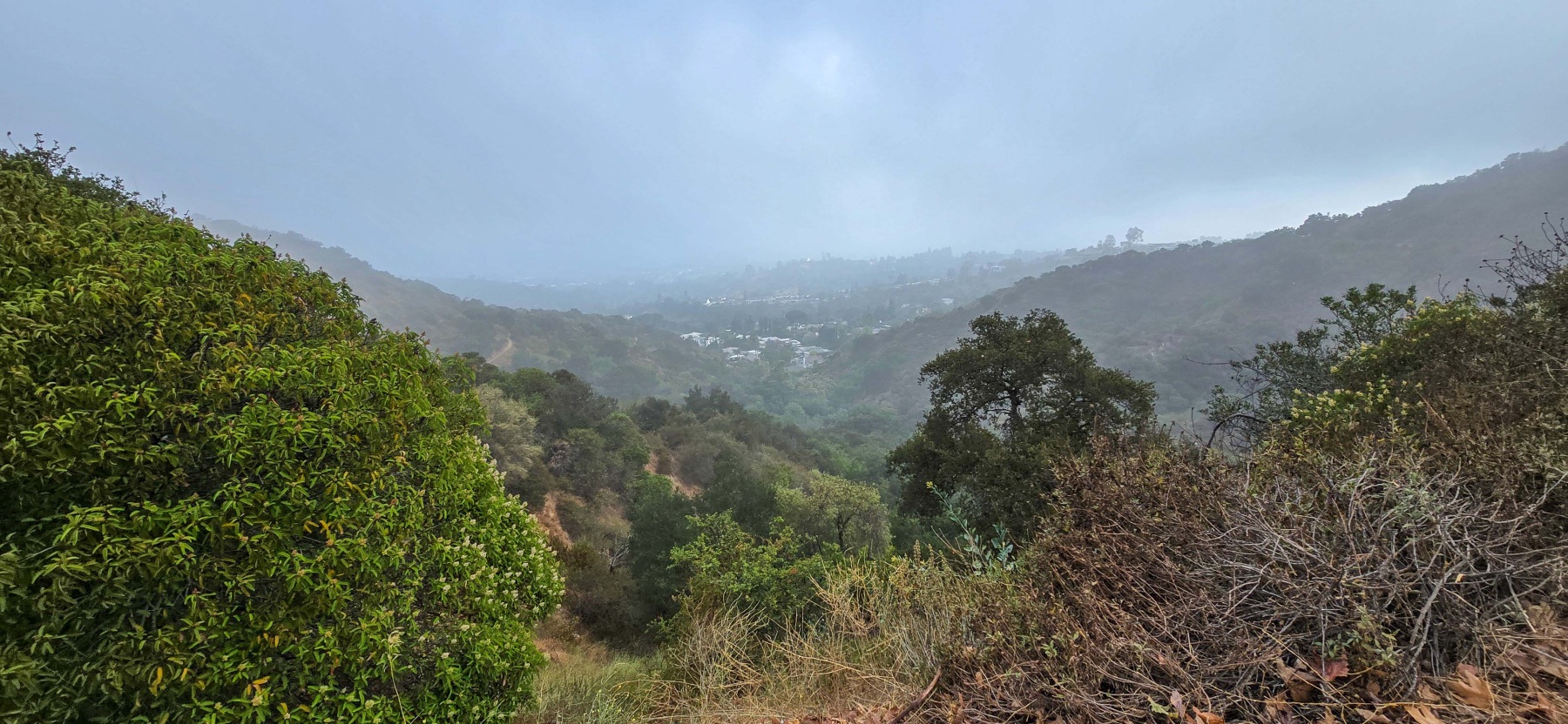 The Fryman Canyon hike isn’t very long at just under 2 miles, but I was astounded by some of the views that were found in that short time. To start, the views looking outside of the canyon are pretty great once the morning fog burns off.