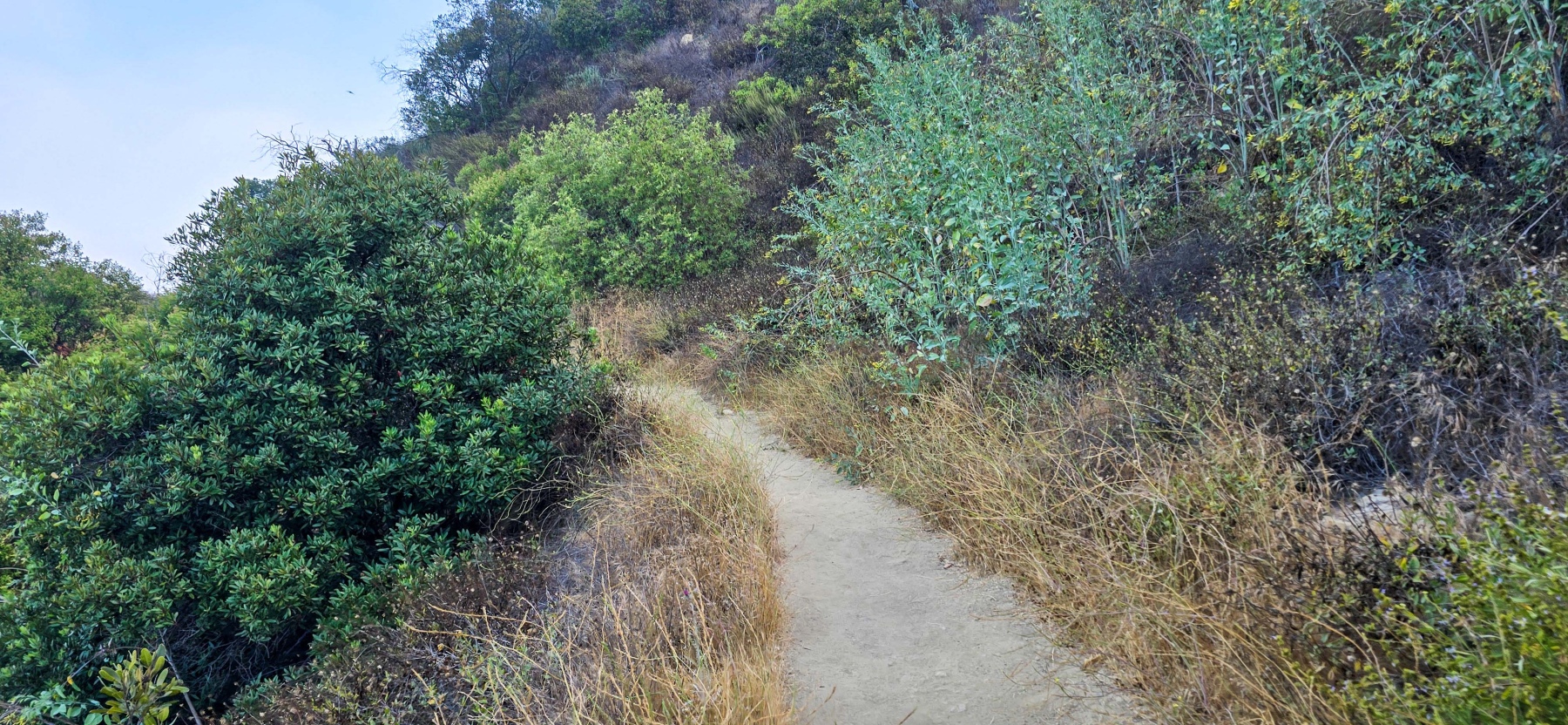 The trail at Fryman Canyon Park is well defined but can be narrow at times. Also, the dry trail did crumble a bit on the edges if you got too close. That can lead to slips and falls so make sure to stay towards the center. There isn’t a ton of cover but there are some shady spots. Still probably want to have some sun protection for the open areas. Shoes with some decent tread are recommended to deal with the inclines and hard packed dirt.