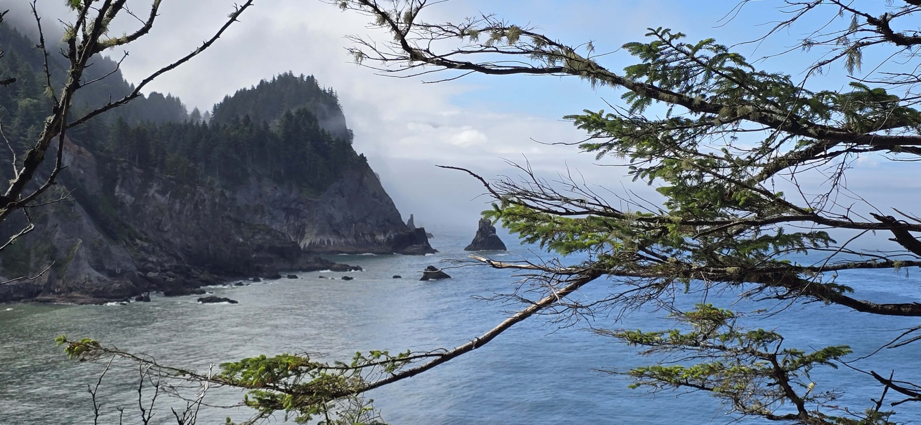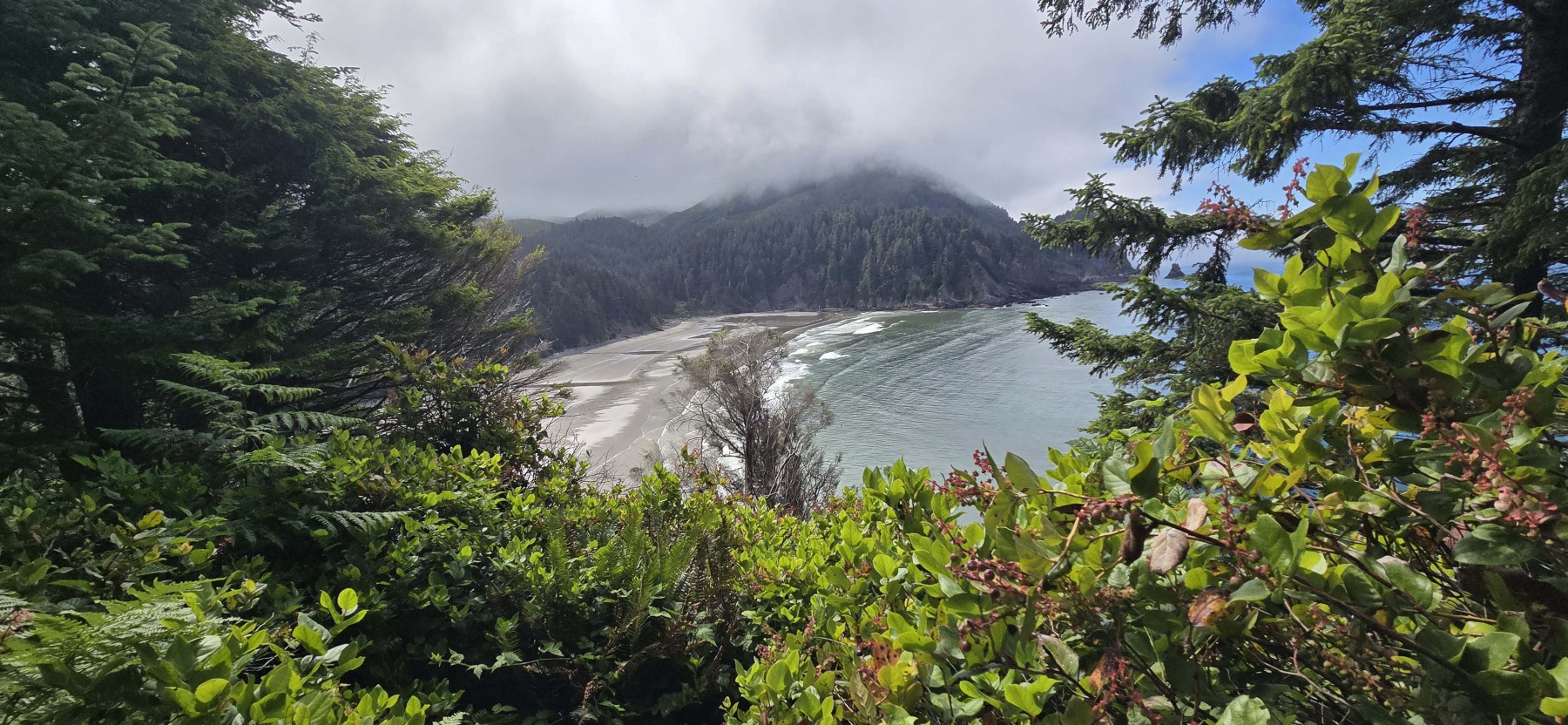 I come from a dry climate so I found the Cape Falcon hike to be really humid. Everything was damp and that included the trail that had a few sections that had mud that seemed to never really dry out. There are also several trees down that need to be cleared, especially through the first part of the hike. A lot of the growth has begun to grow close to the trail making some really narrow areas with a lot of having to brush against the plant life. Overall not bad but you may want to wear long sleeves and pants to protect from all of the plants.