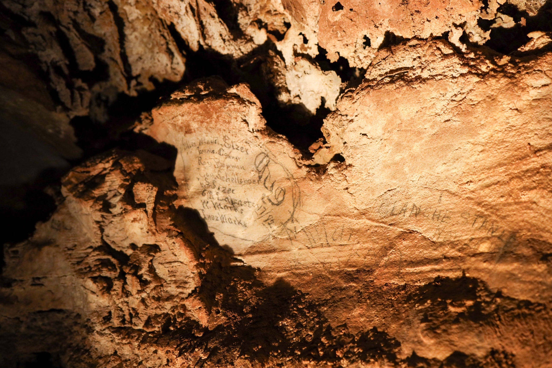 Signatures from guests in the 1890’s on the Wind Cave walls.